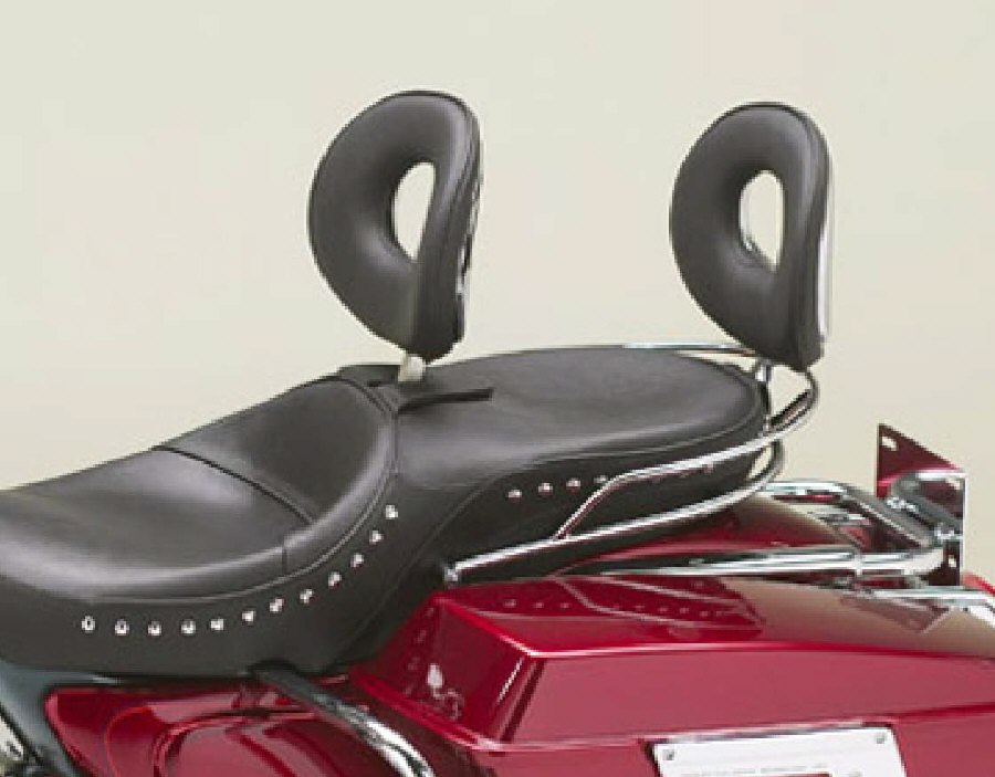 Our Dual Touring saddle accepts two removable rider's backrests (optional) for maximum back support. Each backrest is fully adjustable for a tailored fit to rider posture. You can use a single backrest and transfer it front to rear as needed or you can order two backrests for full time use in your saddle. We offer several styles of backrest to suit your taste, but we recommend the #02-S Ovalbac model because it provides the perfect blend of form and function.
