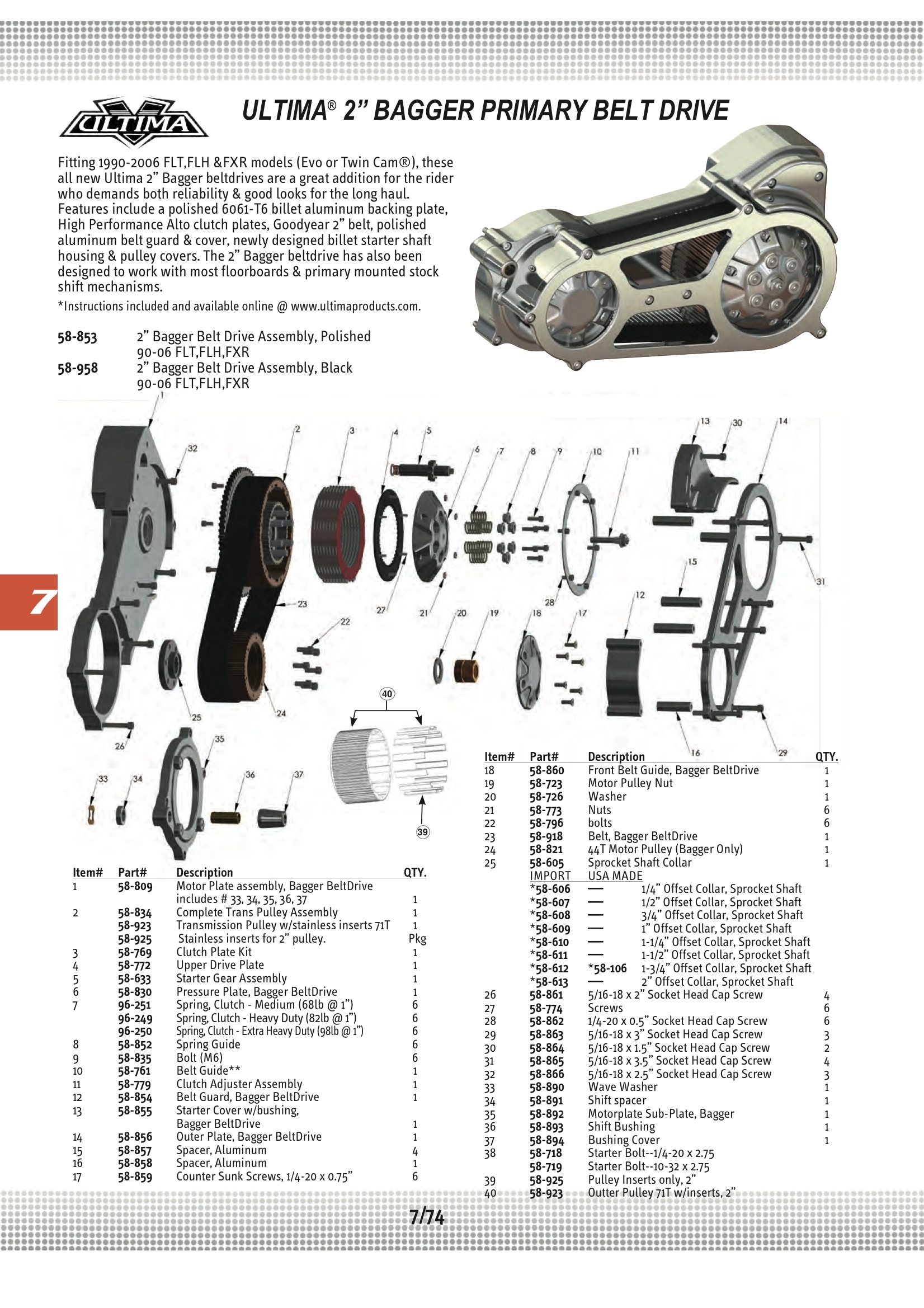 • Kits include front pulley, 1-3/4in. Gates brand aramid reinforced belt, complete clutch assembly, limited lifetime warranty Alto Red Eagle clutch plates, hardware and instructions