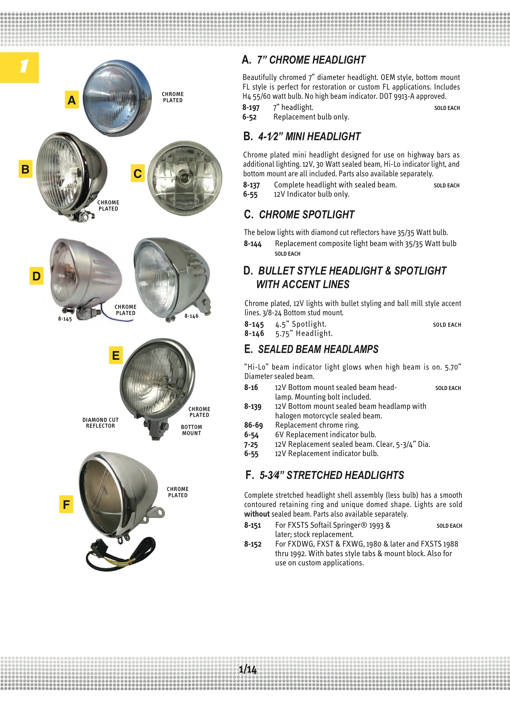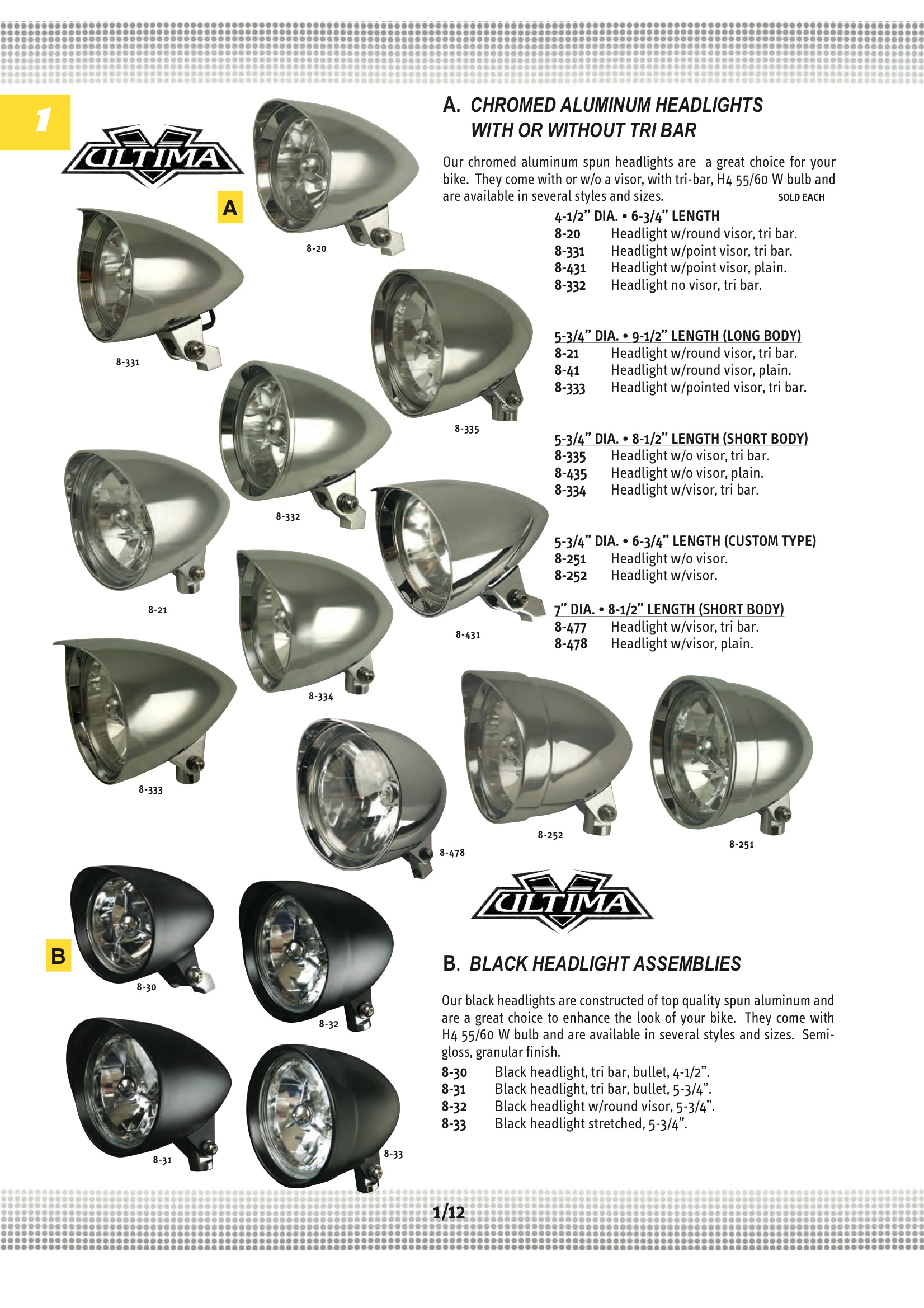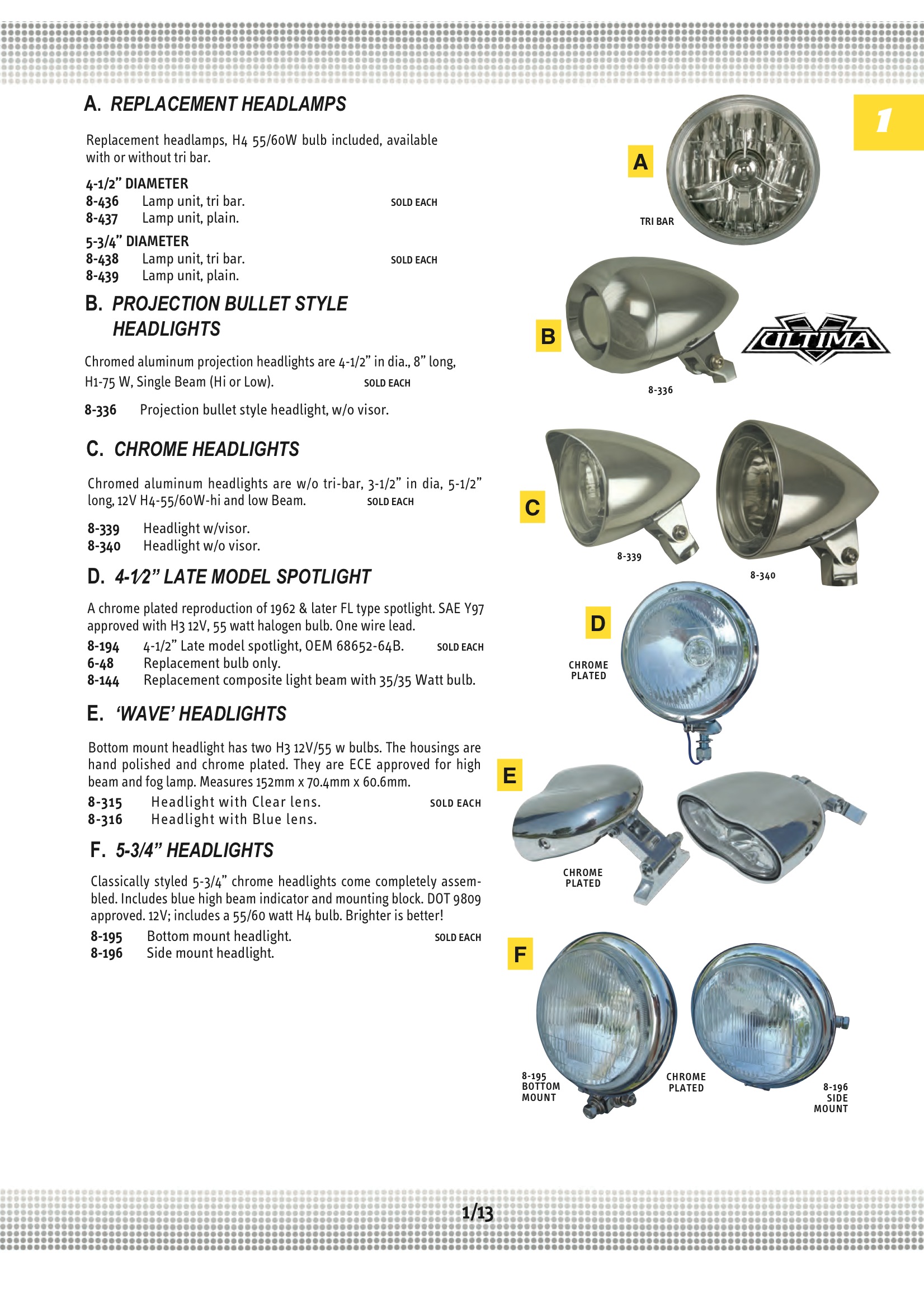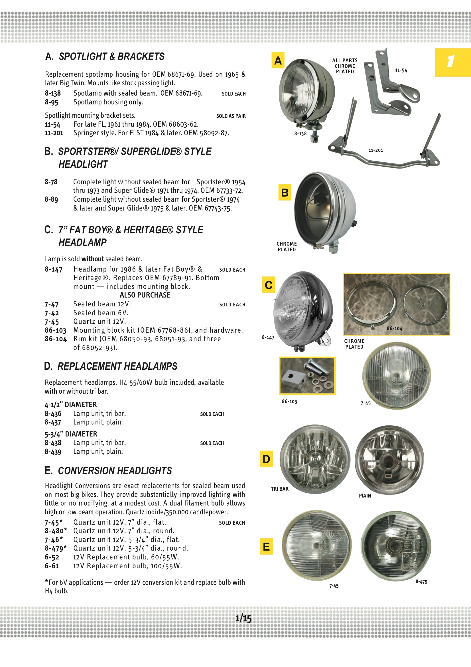 Midwest Motorcycle Ultima LIGHT,HEAD SPT SG E CP; 8-78 Harley Davidson
