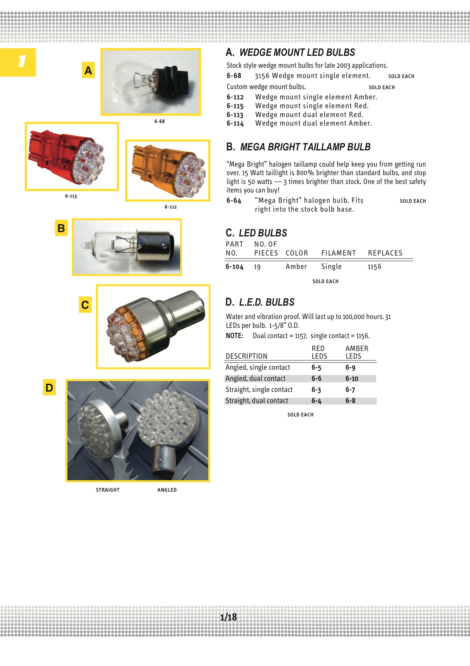 Ultima BULB,LED 18 RED 6 WHITE;RPLCS 1157 Midwest 6-117