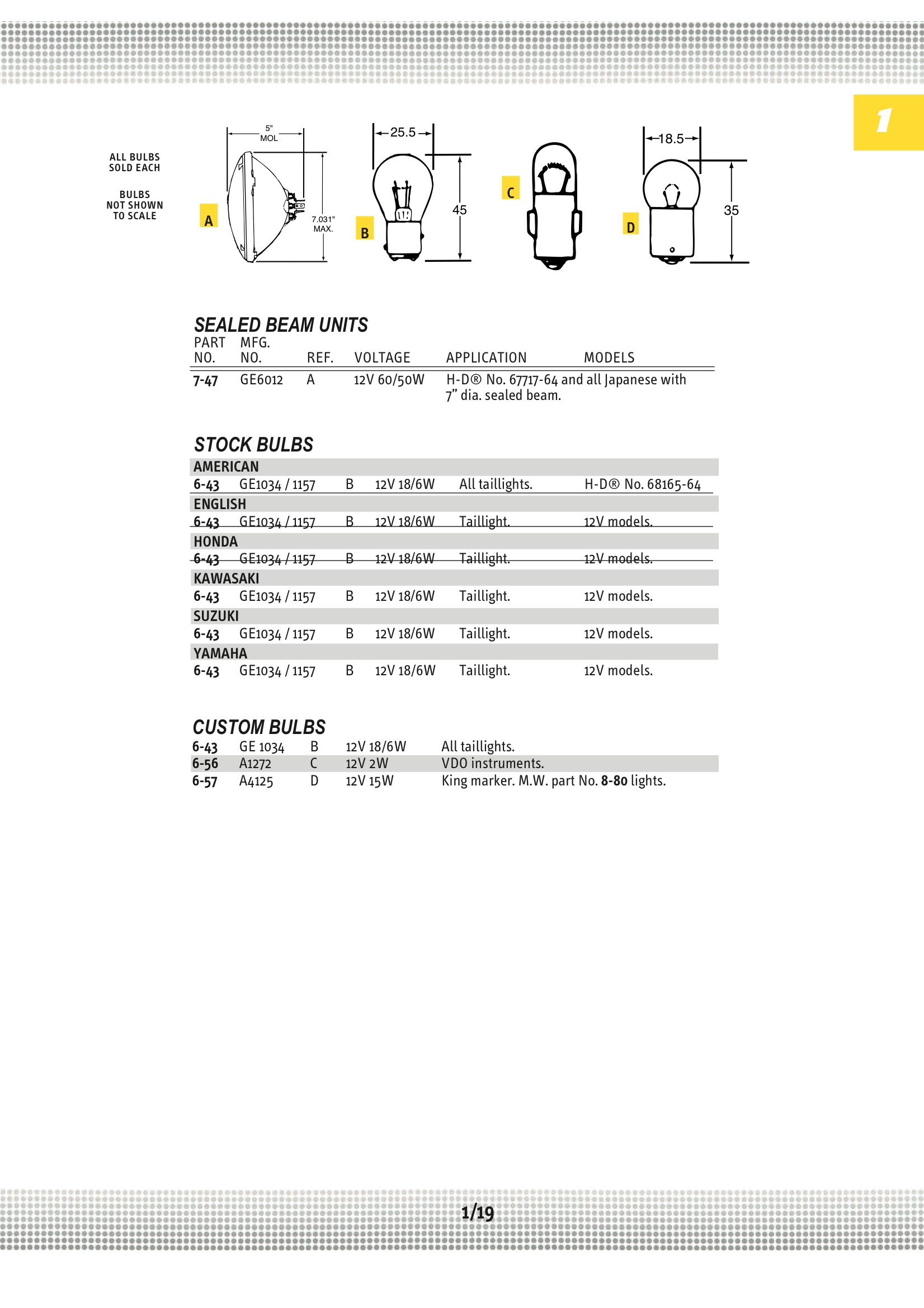 Harley Davidson Spares Midwest Motorcycle Ultima SEALED BEAM, 12 VOLT 12V; 60/50W 7-47