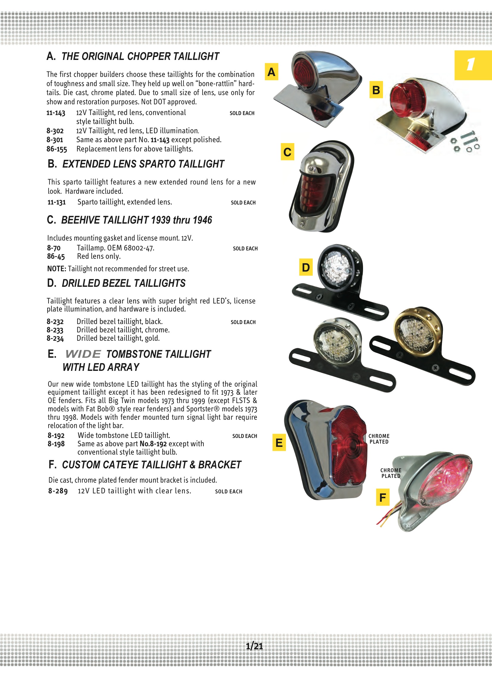 Harley Davidson Spares Midwest Motorcycle Ultima LIGHT,CAT EYE CHROME 12V; 8-79