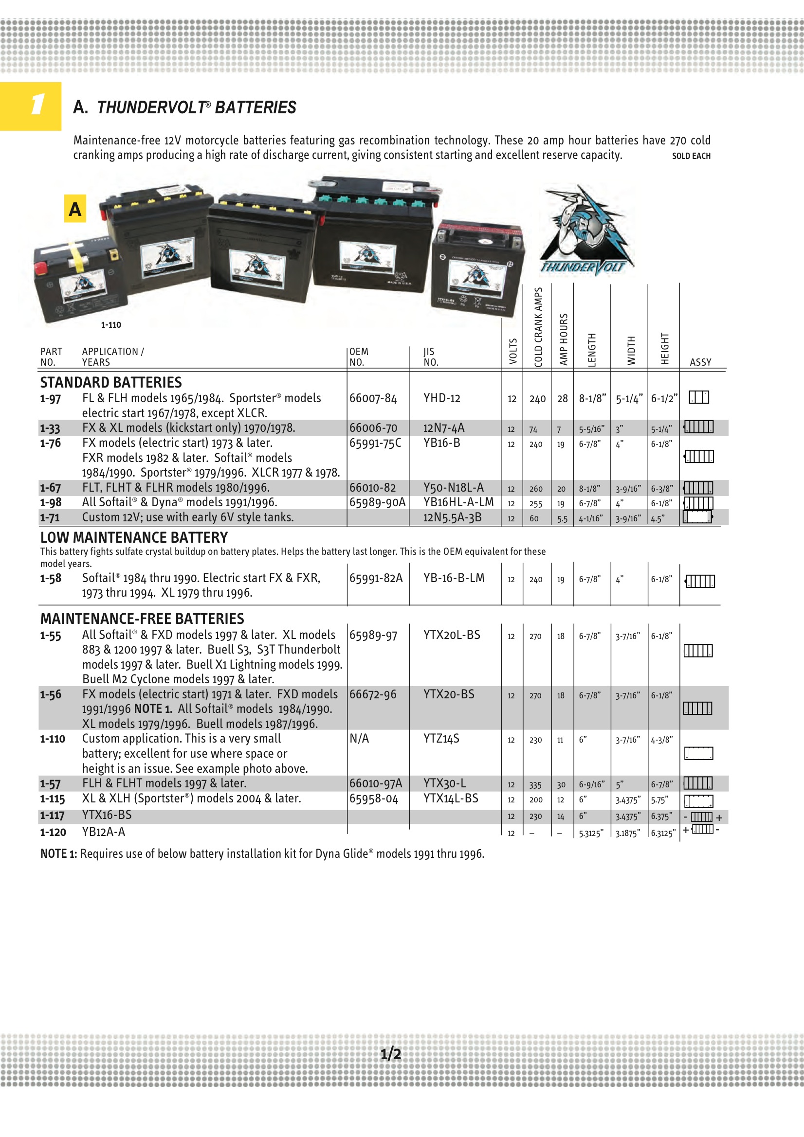Harley Davidson Spares Midwest Motorcycle Ultima Battery CUSTOM;APPLICATIONS 1-110