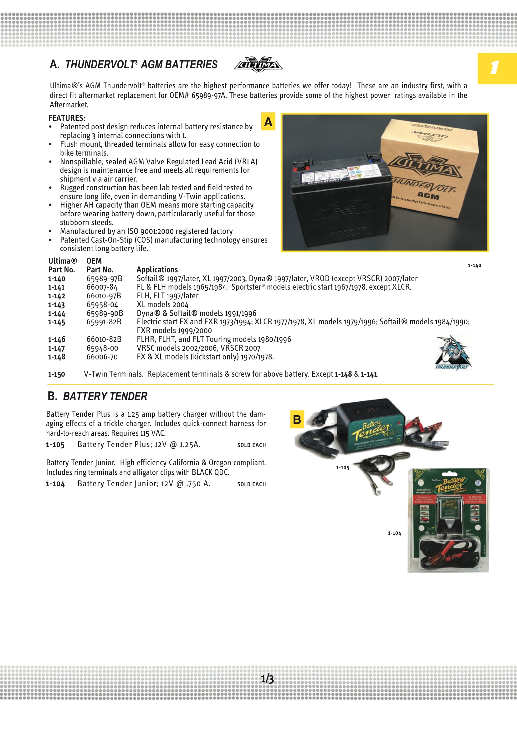Harley Davidson Spares Midwest Motorcycle Ultima Battery, ULTIMA AGM- OE#; 65989-90B 1-144
