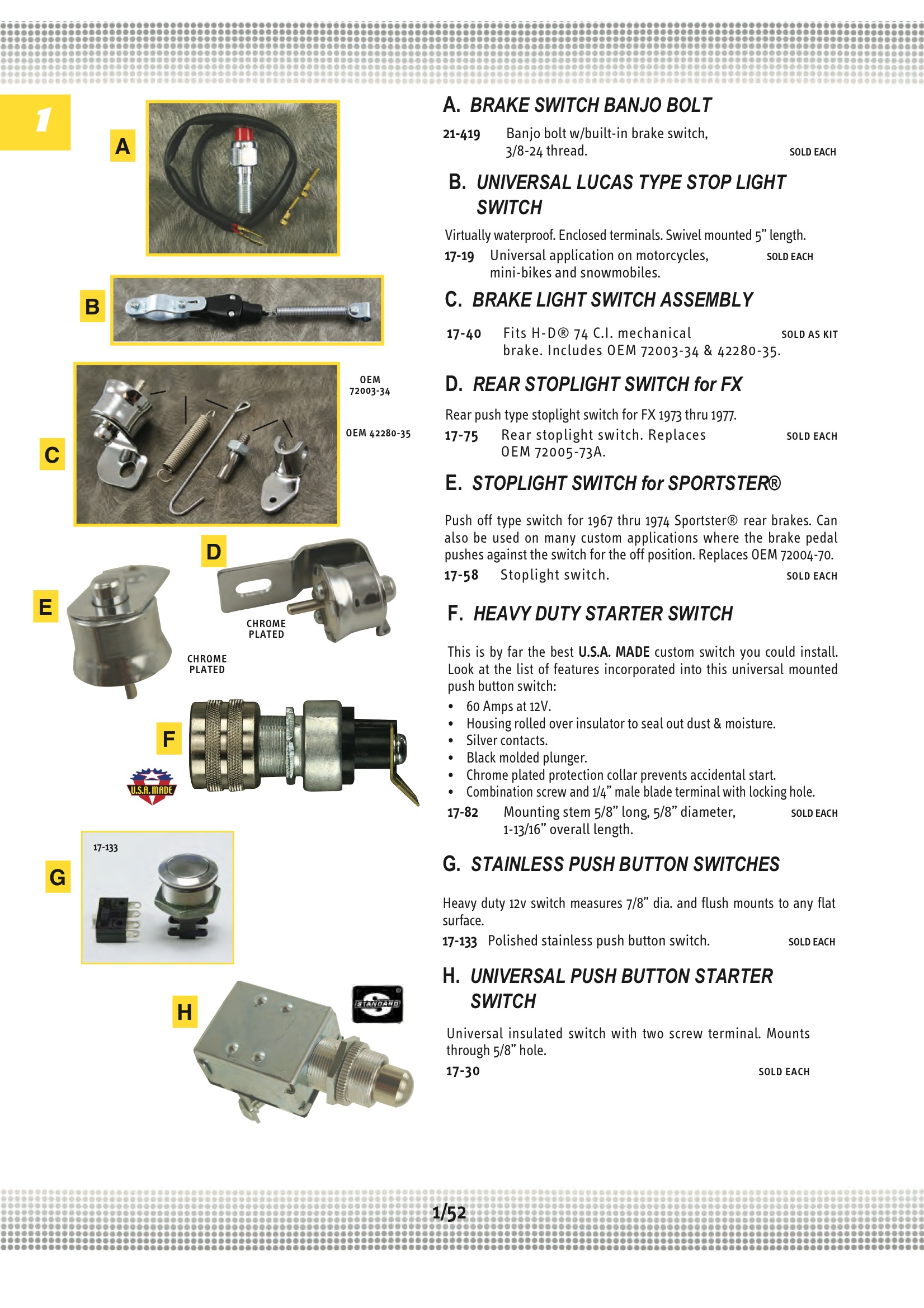 Harley Davidson Spares Midwest Motorcycle Ultima SWITCH,STOP FRT DISC HD; 17-49