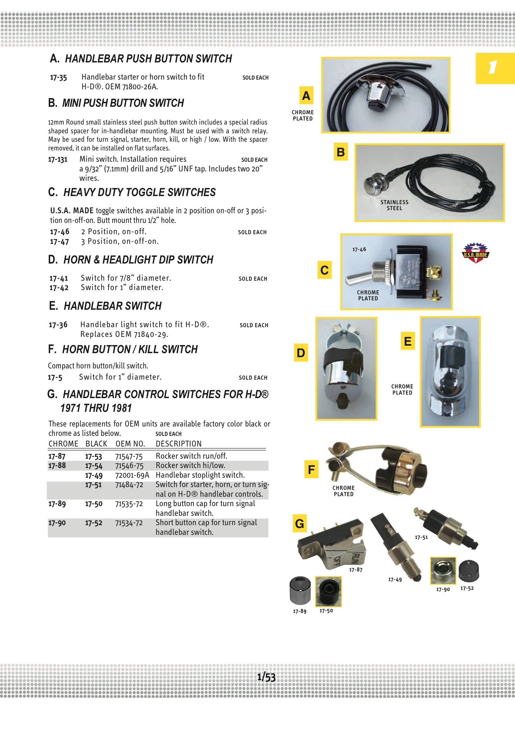 Harley Davidson Spares Midwest Motorcycle Ultima SWITCH,BUTTON HD; 17-51