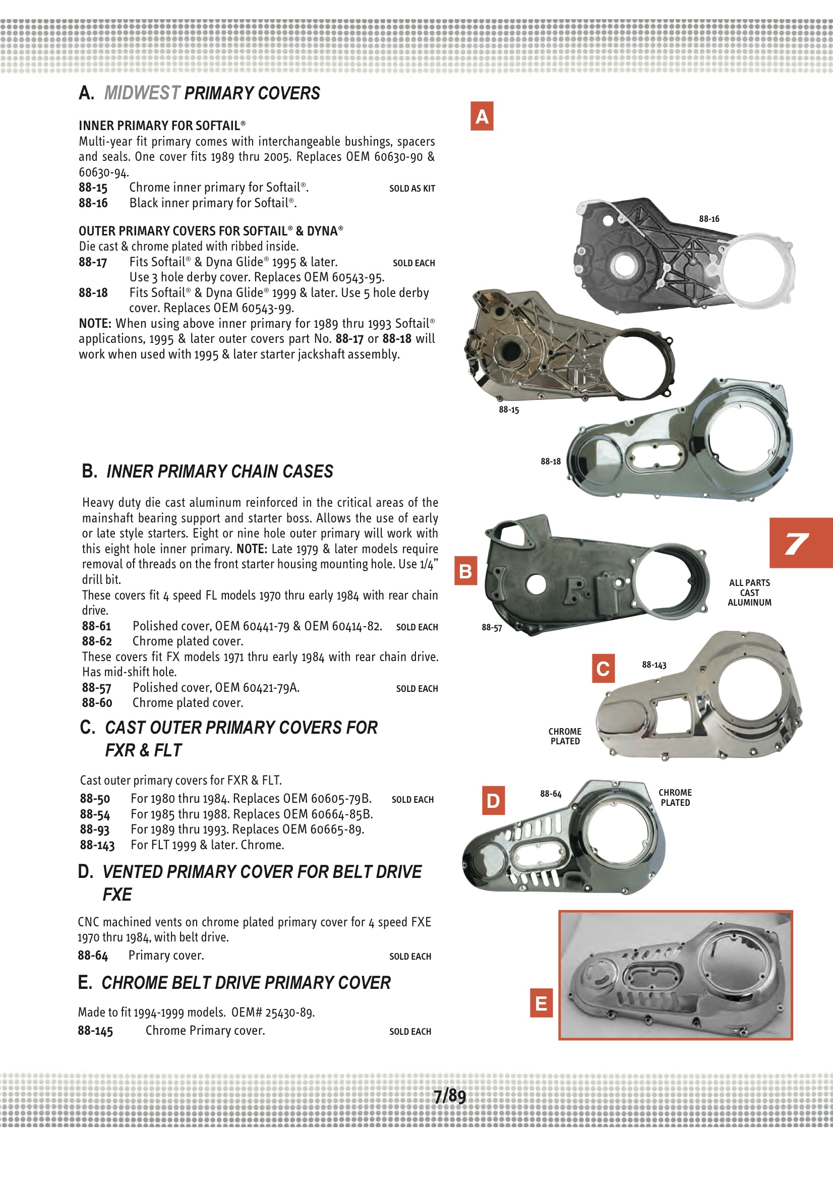 Harley Davidson Spares Midwest Motorcycle Ultima INNER PRIMARY FXST 89-93; CHR CMPLT 88-132