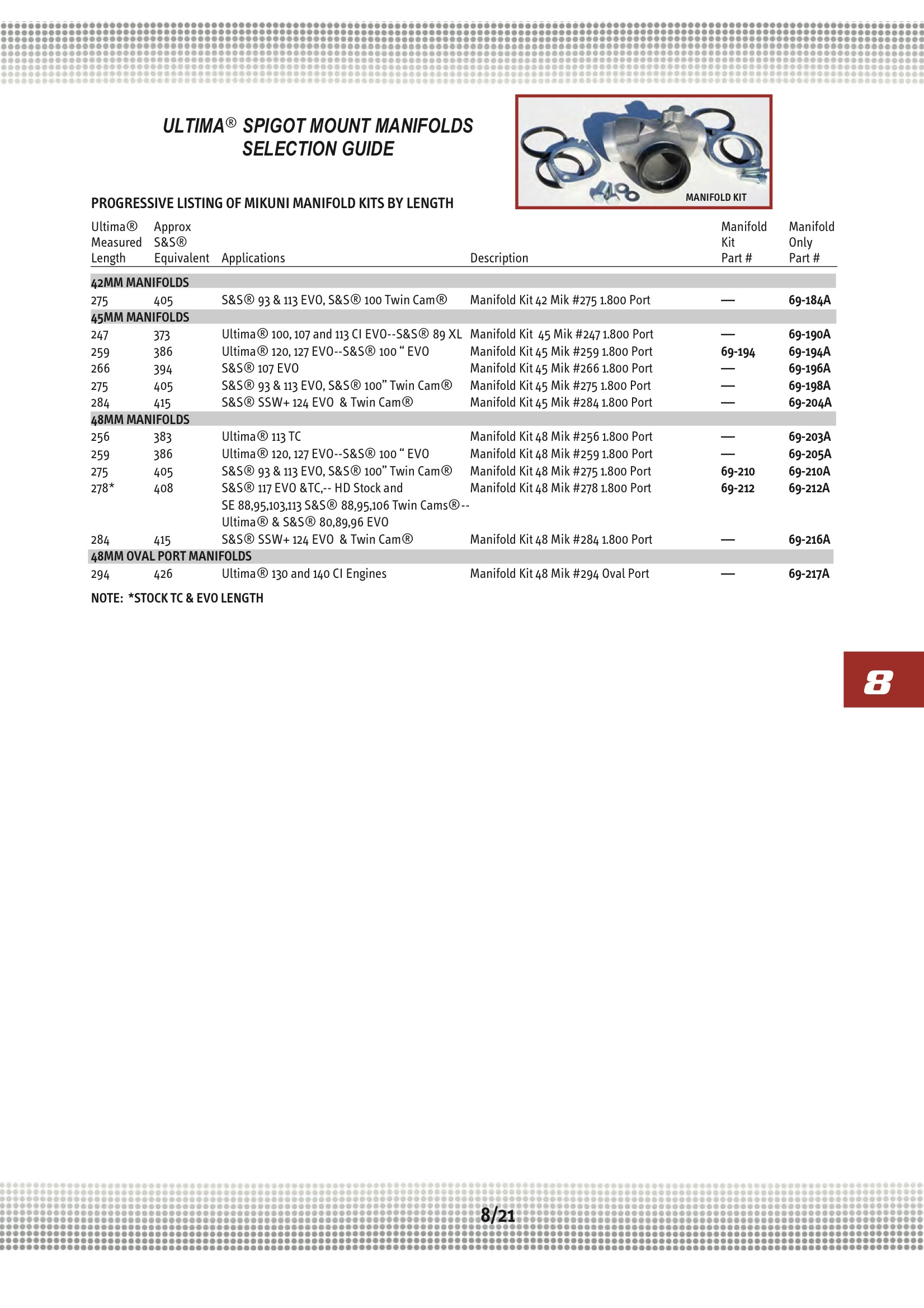 Midwest Motorcycle Ultima MANIFOLD KIT 45 MIK #259; 1.800 PORT 69-194 Harley Davidson