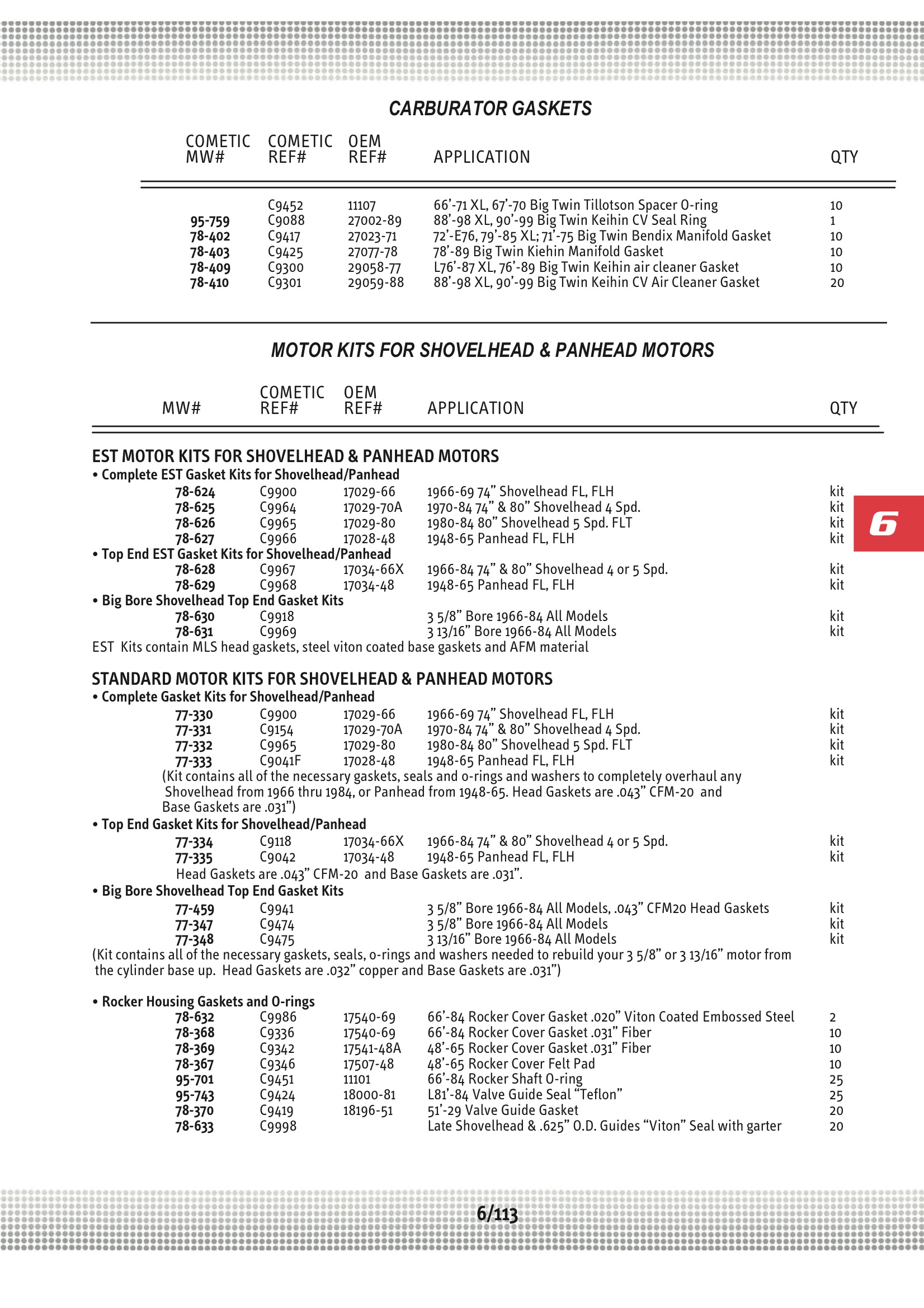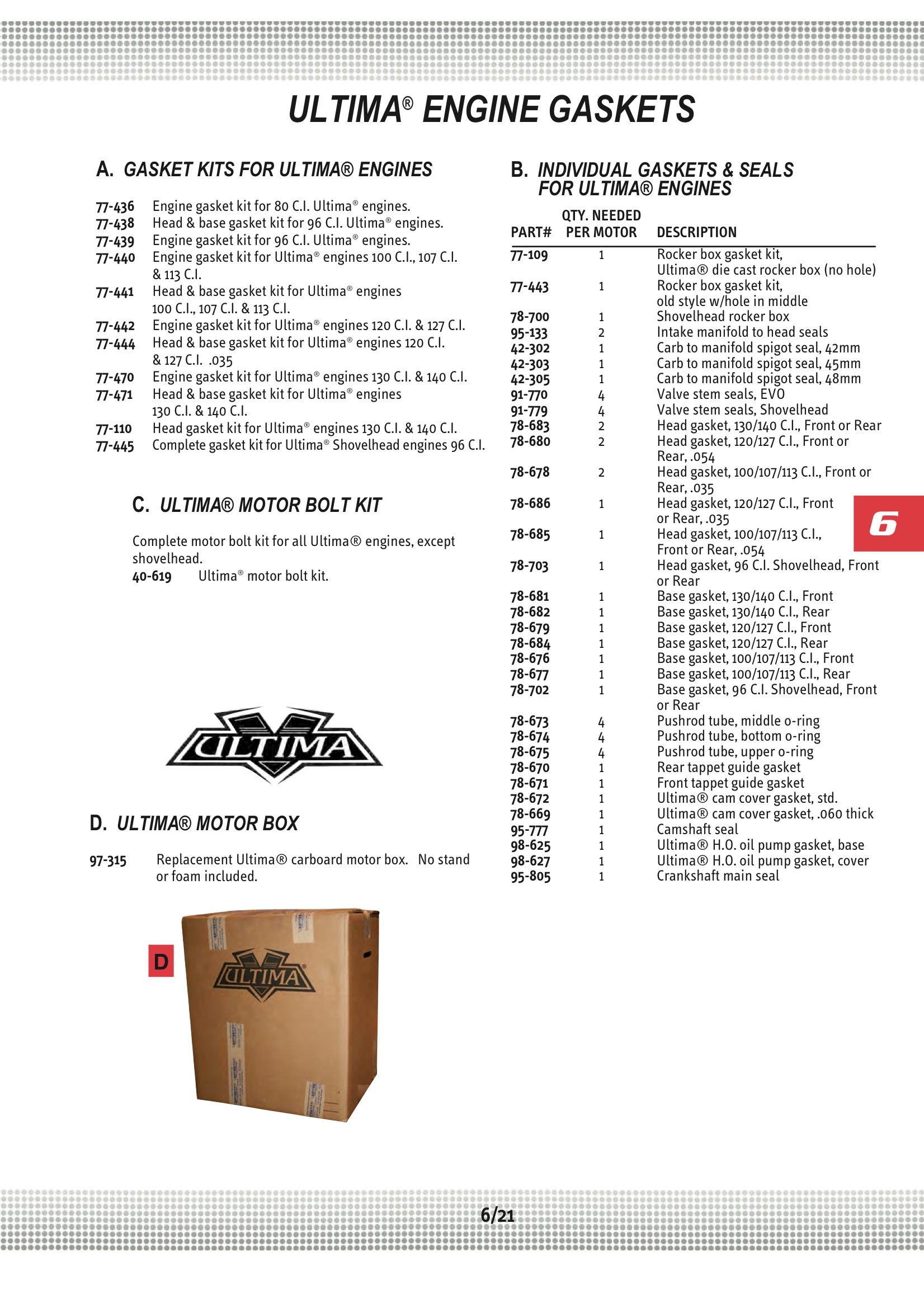 Harley Davidson Spares Midwest Motorcycle Ultima ULTIMA CARB KIT,;SHOVELHEAD, O-RING STYLE 42-127