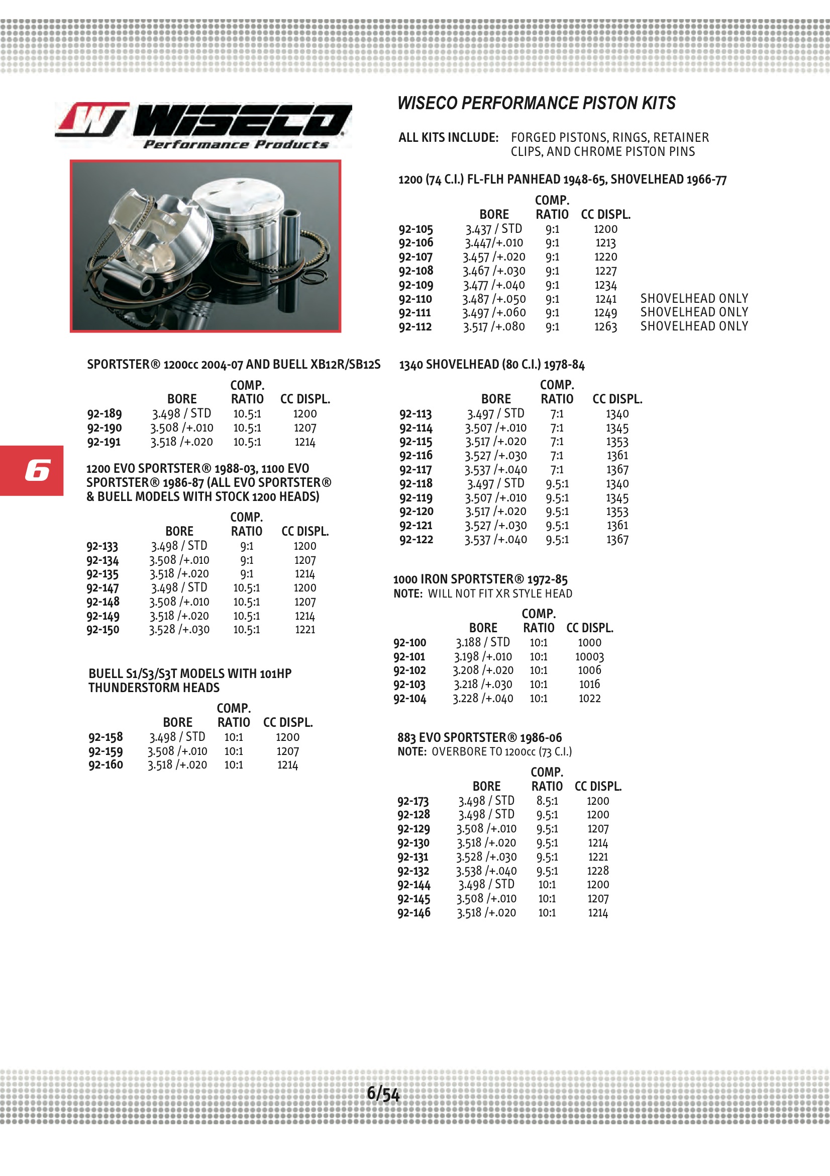 Harley Davidson Spares Midwest Motorcycle Ultima PISTONS, SPT 1000 .010 ,; 72-85 92-101