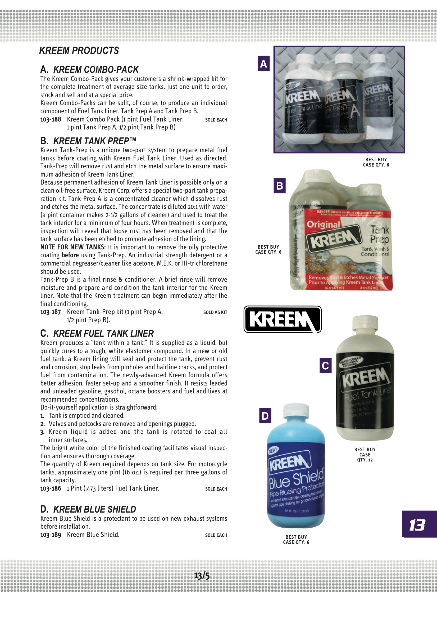 Harley Davidson Spares Midwest Motorcycle Ultima KREEM COMBO PAK TANK;LINER & PREP KIT 103-188