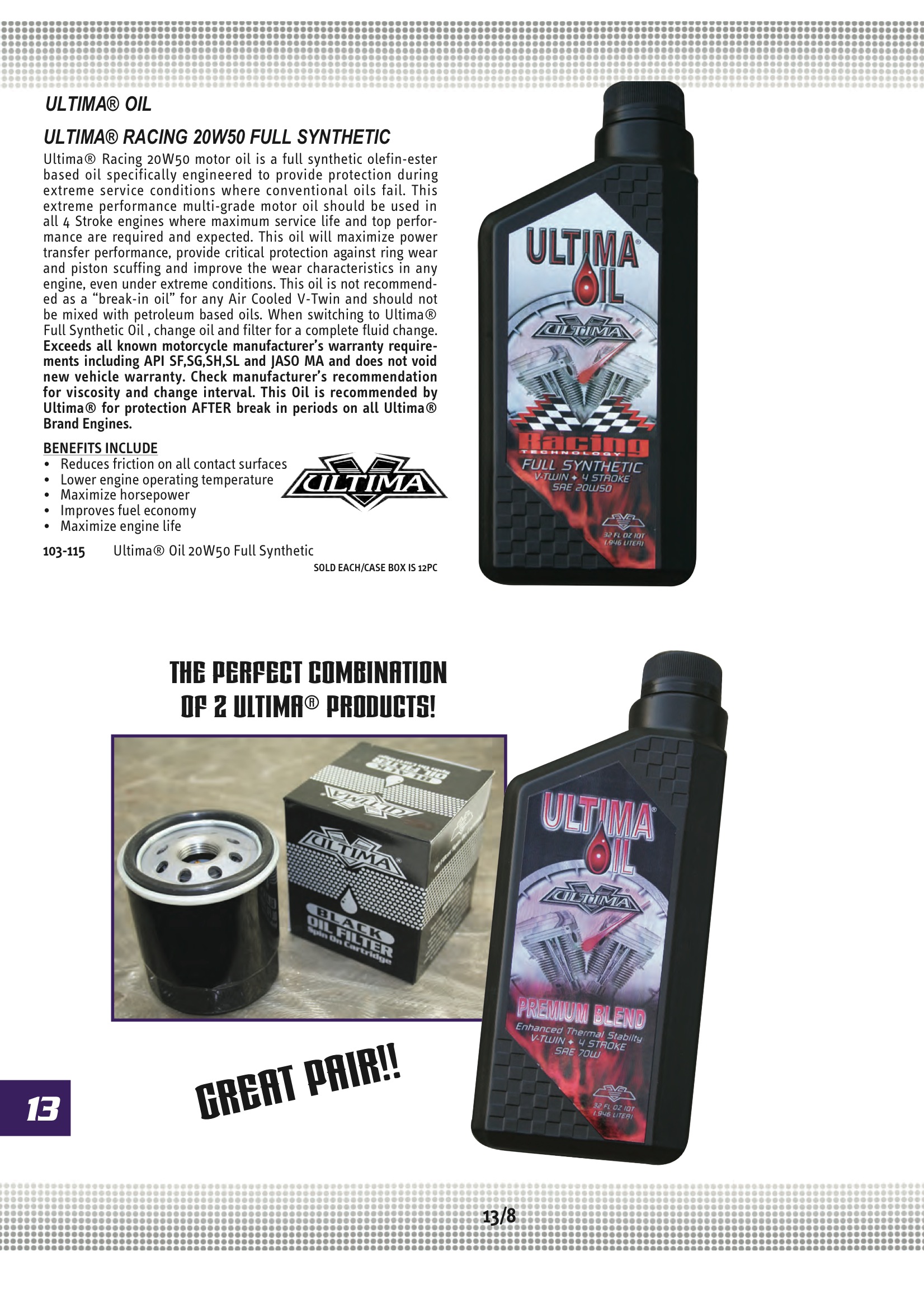 Midwest Motorcycle Ultima ULTIMA SAE 20W-50;SYNTHETIC BLEND 103-114 Harley Davidson