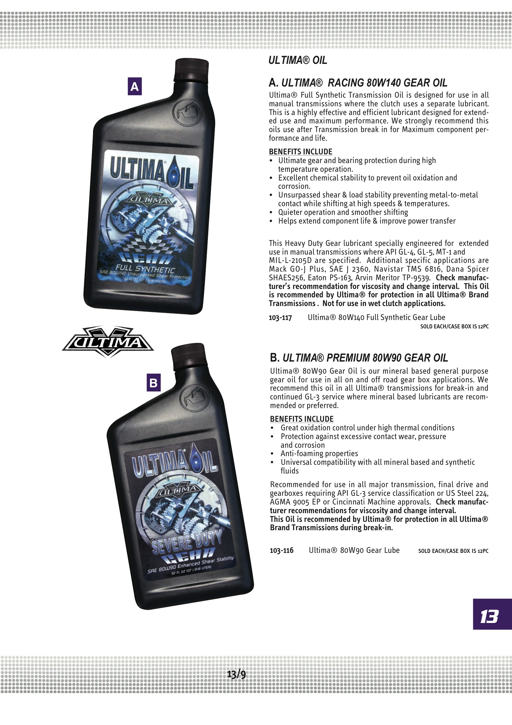 Ultima ULTIMA 80W-90 GEAR OIL; Midwest 103-116