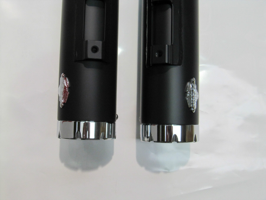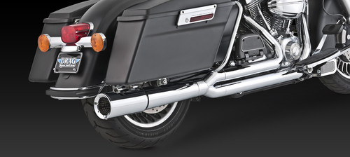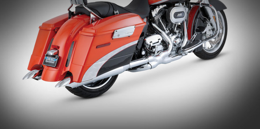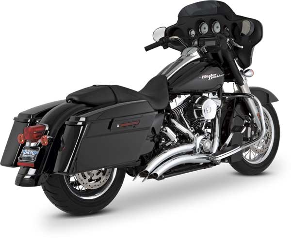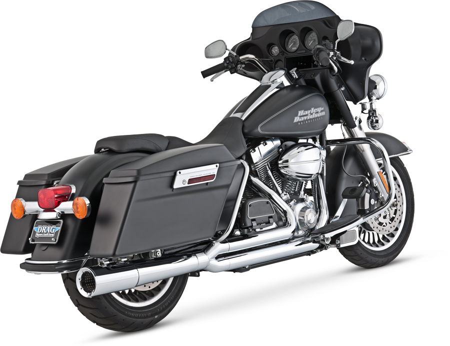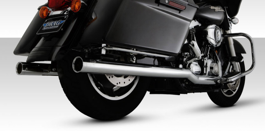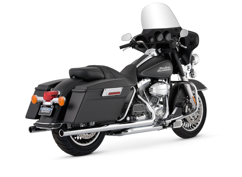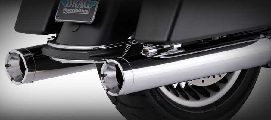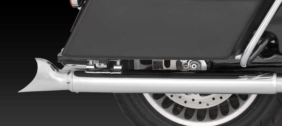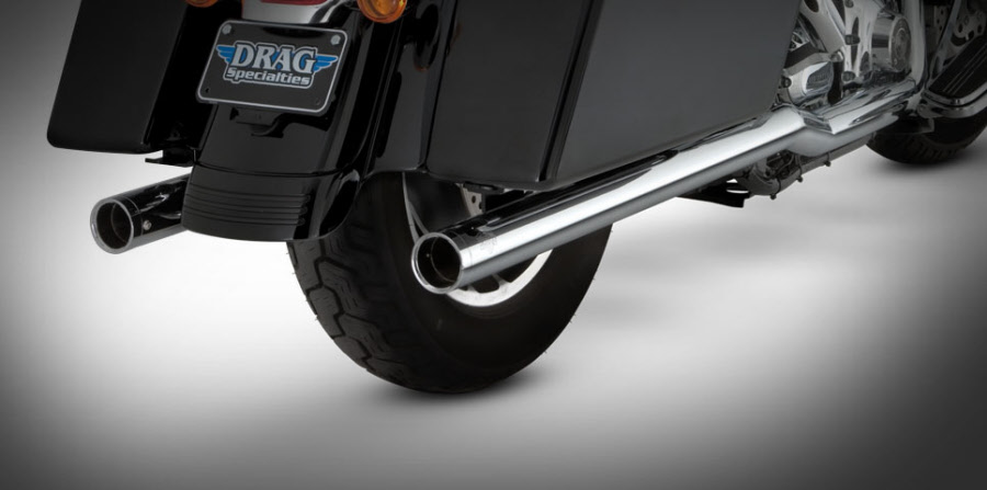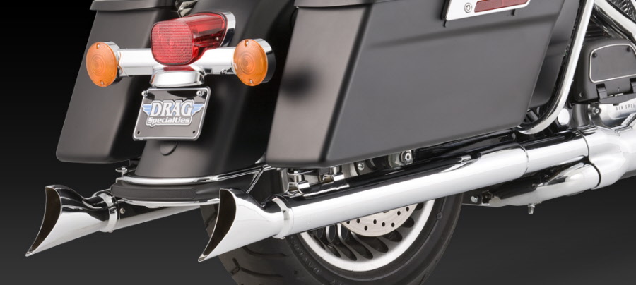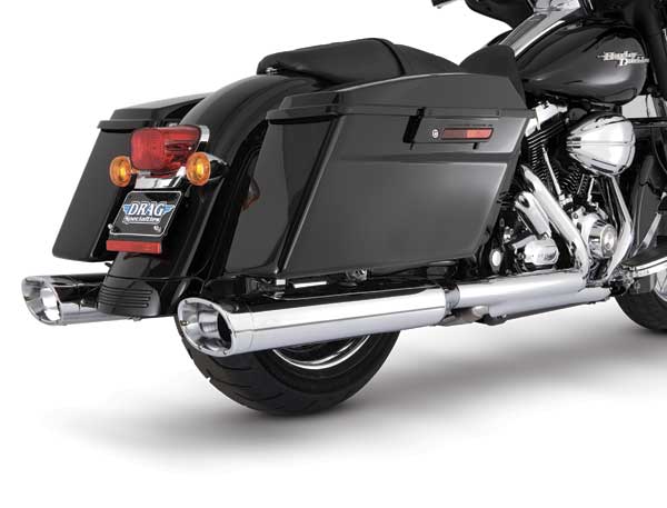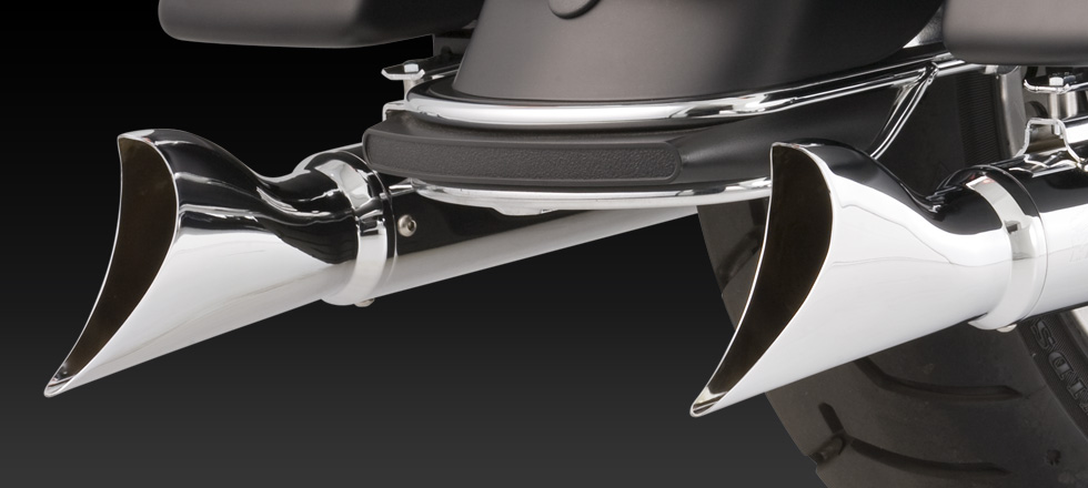 Material: Chromed steel and stainless steel. Slash Cut exhaust tips can be rotated down or out. Optional Turn Down rotatable exhaust tips and new Snub Nose exhaust tips are available.