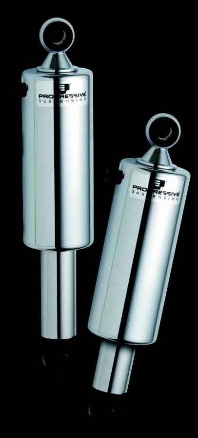 Harley Davidson Progressive Suspension Air Dragger Shocks see our Compressor kit and bar mounted controller too- 716-1001C Harley Davidson Touring Models Progressive air Suspension have combined a precision machined air chamber with velocity sensitive, multistage valve technology, and an internal progressive rate coil spring.This mounts to a clever compressor unit that mounts into the back of a saddle bag.This easy to install system gives you up to 2 inches 'On-the-fly' height adjustment on most Touring models.Shocks are fully Chrome plated, look great and house a unique internal bumper that dampens even the hardest hits. see our Compressor kit and bar mounted controller too this is for one Pair of Shock absorbers.see also our Bagger Bar mount adjustable suspension controller