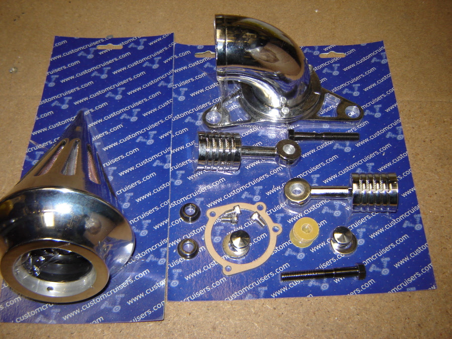 Fitment: Will Bolt directly to stock 40mm or Screamin' Eagle 44mm CV carbs or Delphi throttle bodies. Can be installed on Mikuni HSR42/45/48, S&S E or G Shorty